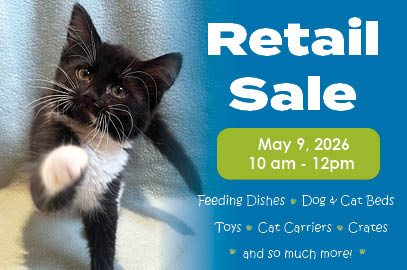Mark your calendars! We’re having a retail sale, Saturday, May 9th from 10am-12pm (noon)! Need some dog toys? Maybe a leash or two? What about a cat toy or dog crate? Your pets can’t have... Read More